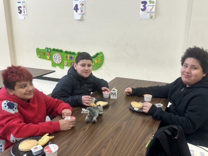 Felicidades a los treinta y ocho estudiantes que lograron una asistencia perfecta durante el tercer trimestre. Estos estudiantes fueron invitados a un desayuno especial el viernes, 20 de marzo. Los estudiantes recibieron una gran ovación por parte del personal al entrar en el MPR para disfrutar de un delicioso desayuno a base de panqueques. Si su hijo o hija no fue uno de esos treinta y ocho, ¡aún tiene una oportunidad más! El cuarto trimestre acaba de comenzar. Es un buen momento para empezar a trabajar en ese objetivo de asistir a la escuela todos los días y llegar a tiempo.